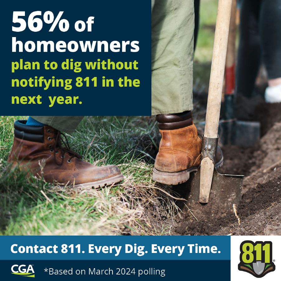Even for small home projects like planting trees or installing a fence, remember to always contact 811 before you dig, every time! Every digging project, no matter how large or small, requires contacting 811.